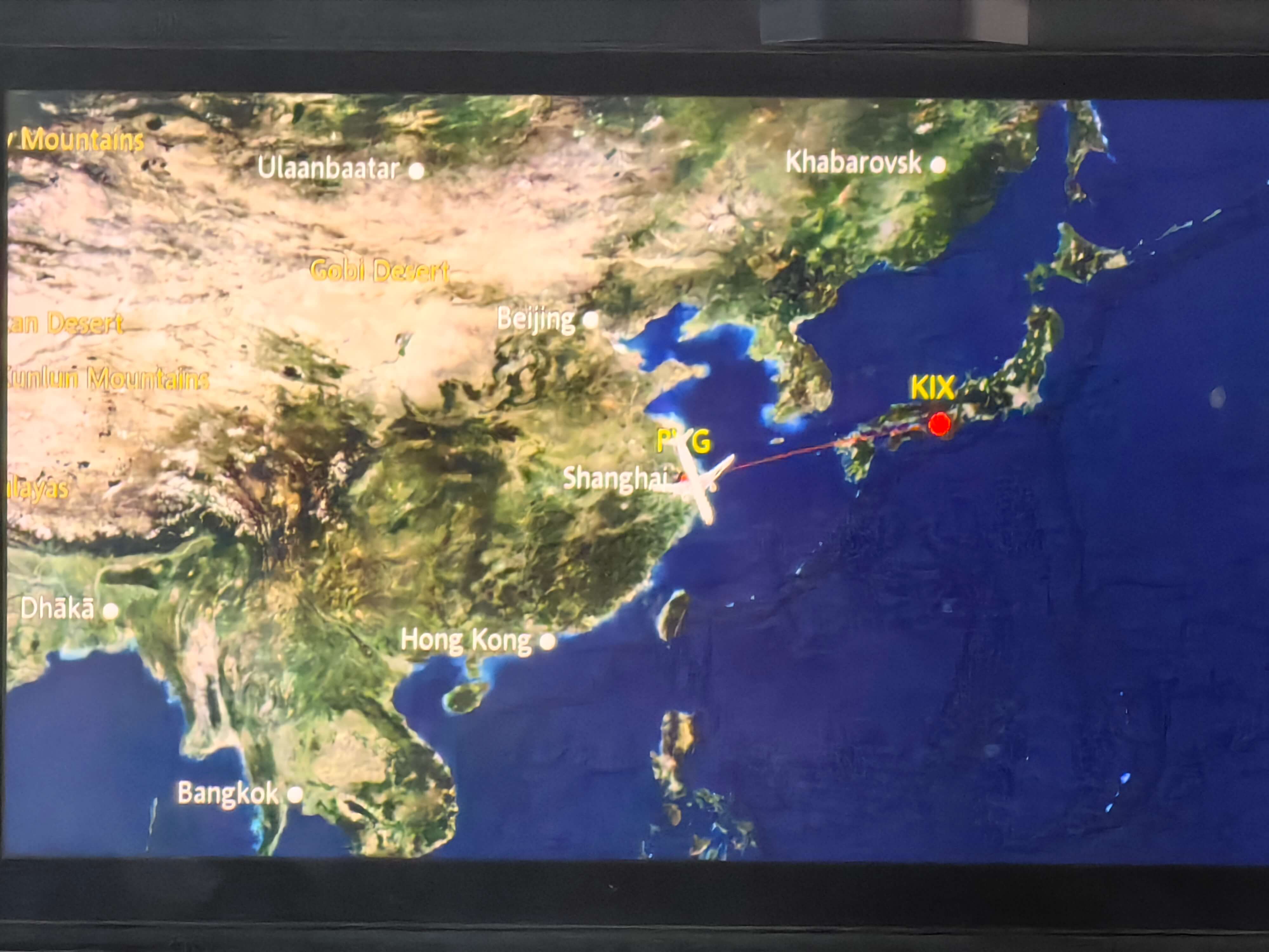屏幕上显示航线图,因为日本比中国快一个小时,我们向东边飞,这下真是“向夜晚奔去”了