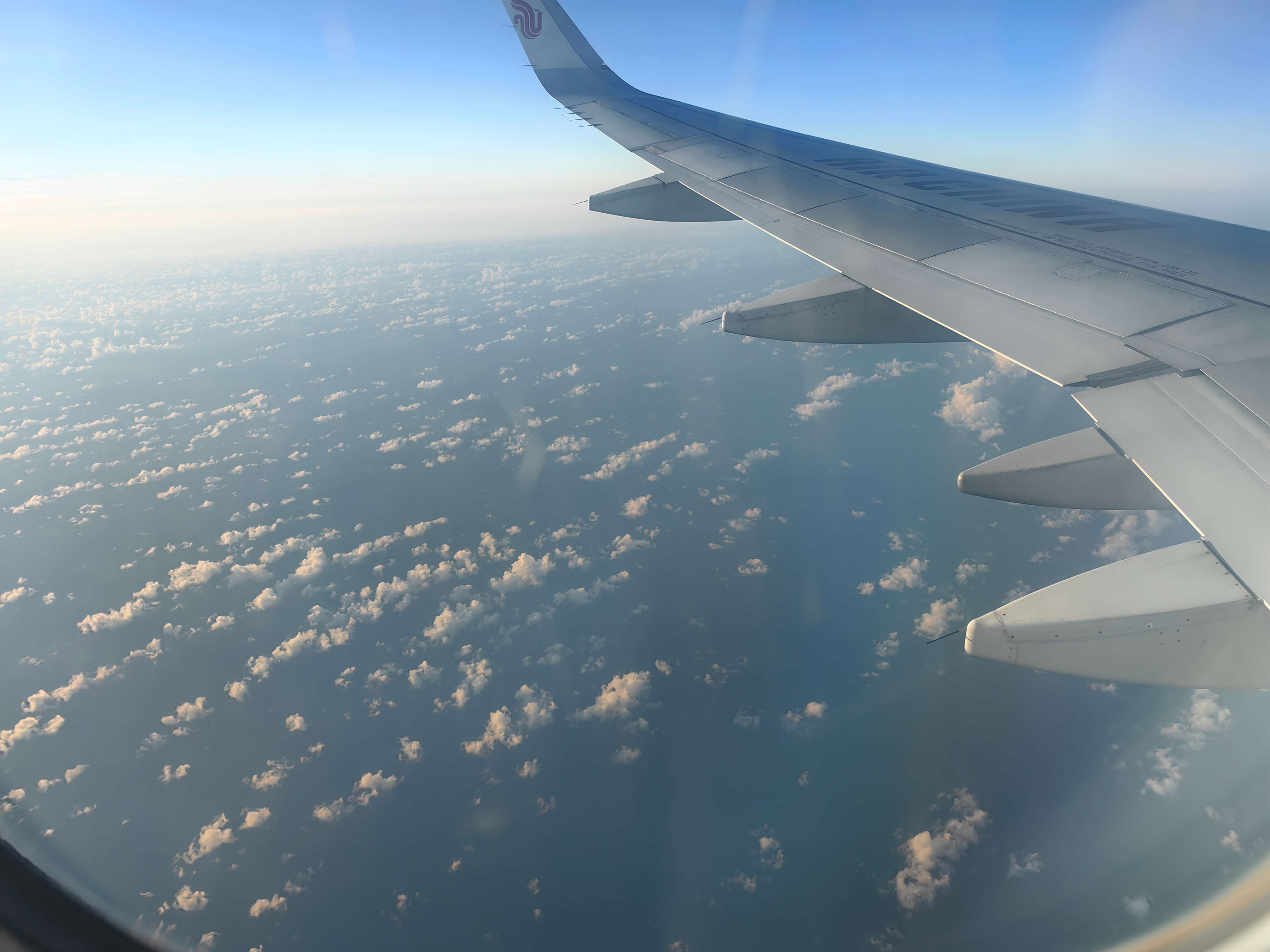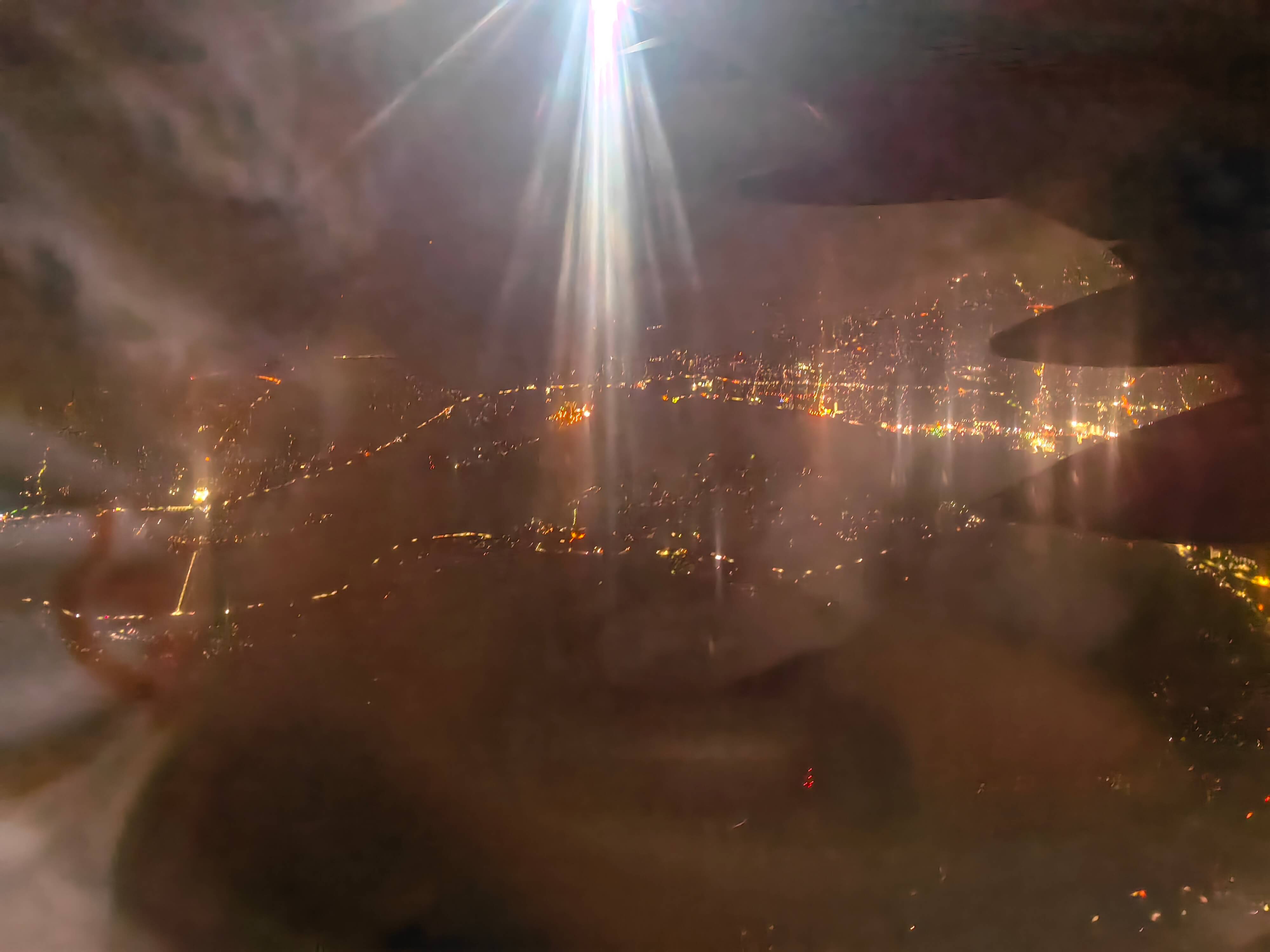 因为中间吃了一顿饭,2个小时的航班感觉很短,稍微眯了一会儿就到了,外面已经被夜晚笼罩了,可以看到地面上璀璨的城市灯光。