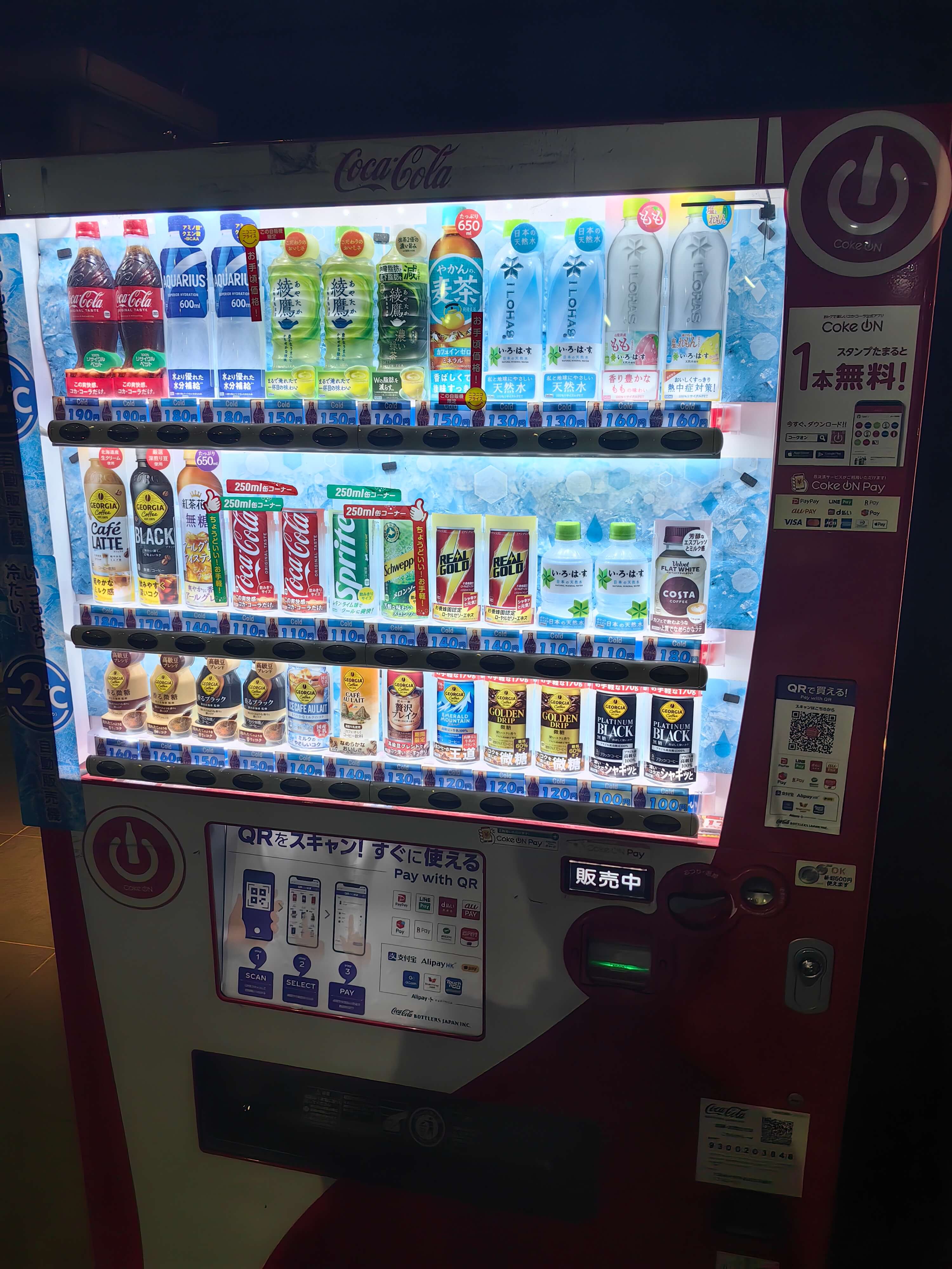 这是在第一个饮料贩卖机,朋友饶有兴致地买了瓶咖啡。