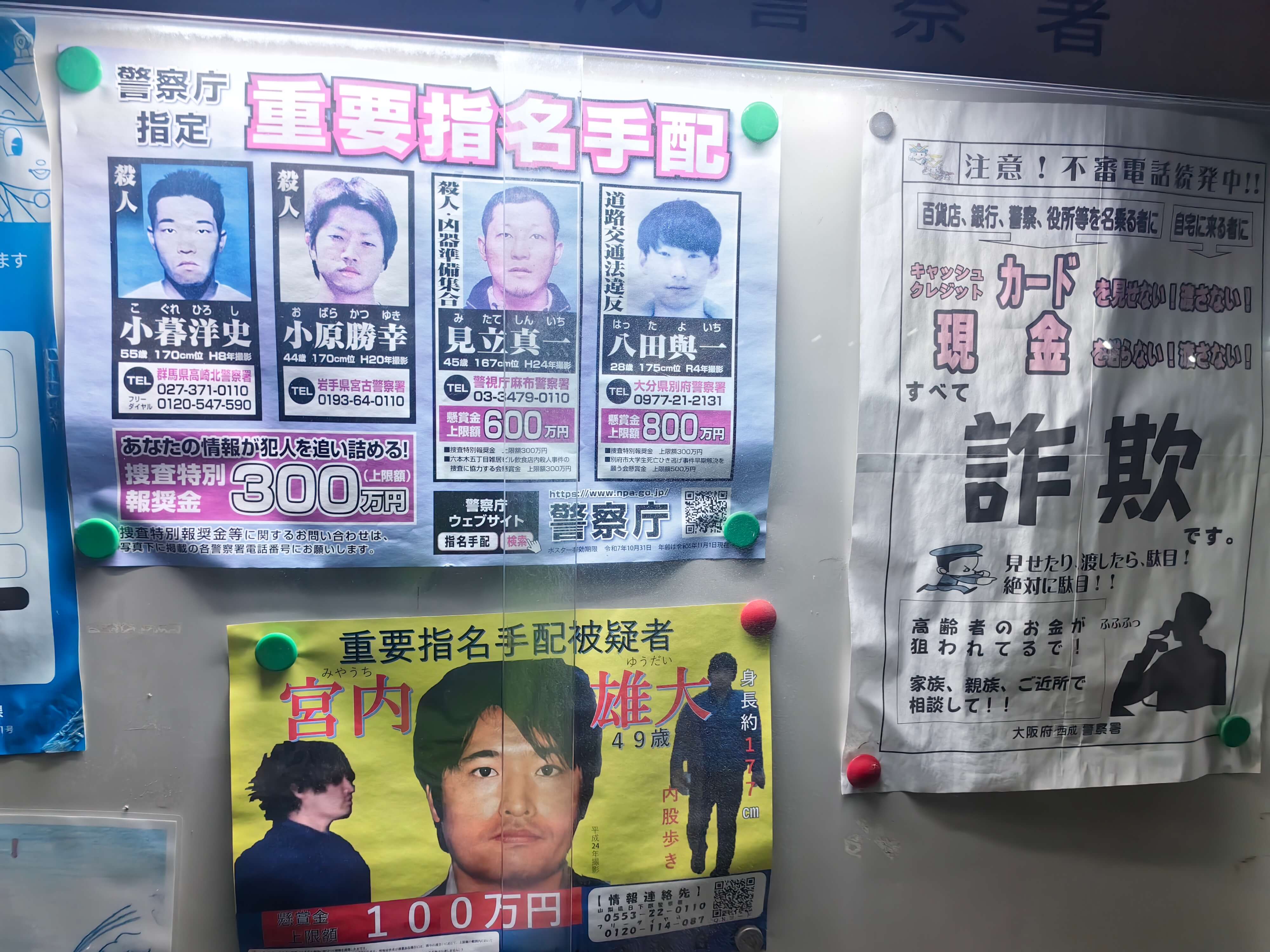 日本警察局和通缉令,在影视游戏作品里常见的东西,还是第一次在现实中见到