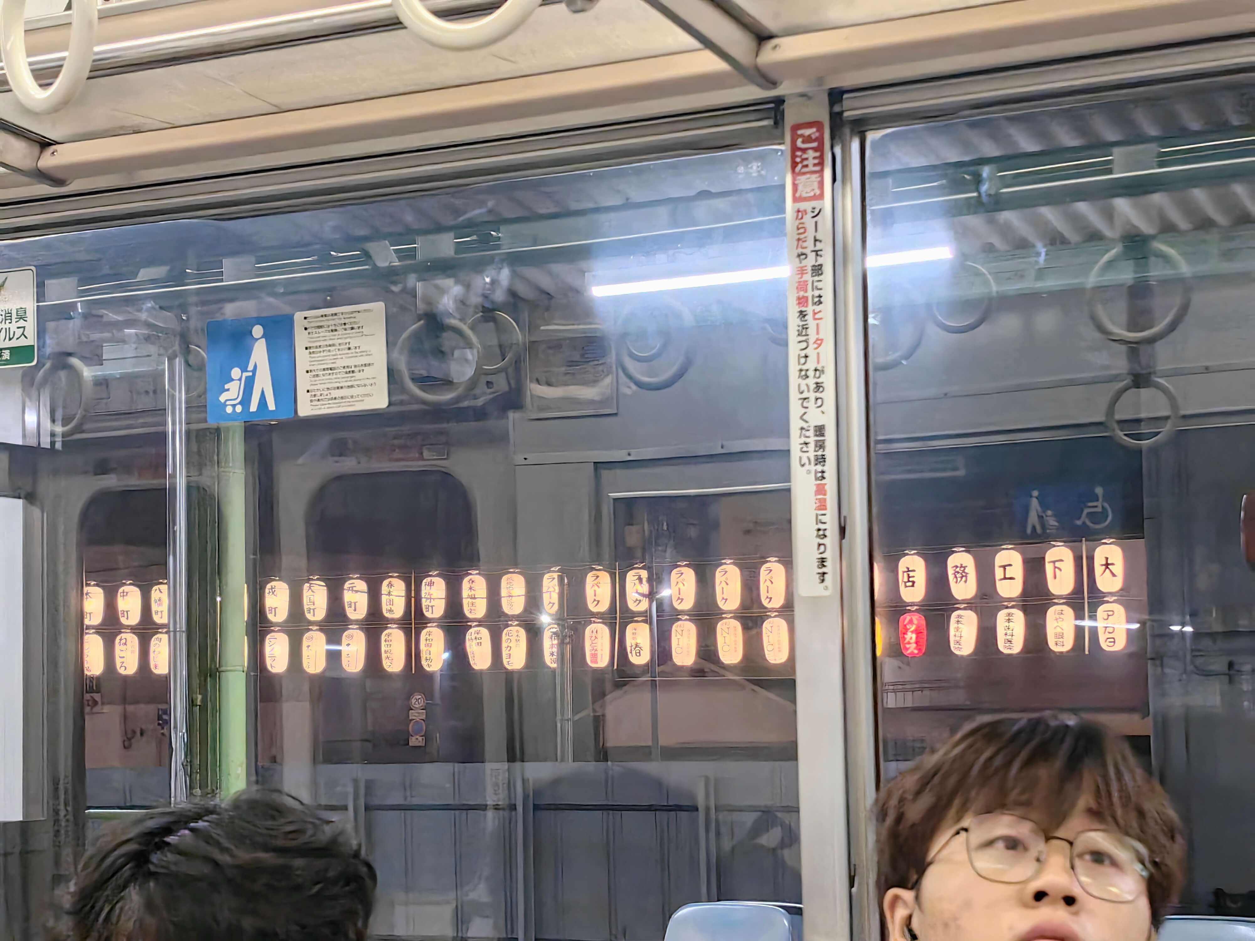 窗外可以看到一些建筑,比如日本典型的公寓楼,一排漂亮的灯笼